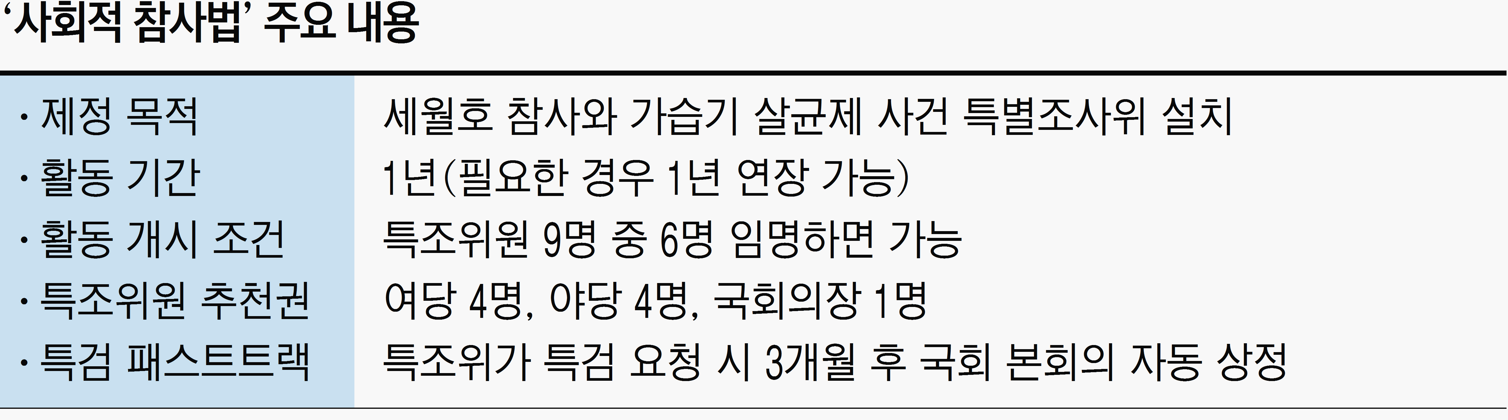 한 점 의혹 없는 진상규명 첫 단추 끼웠다…‘사회적 참사법’ 국회 통과<경향신문 2017년 11월 25일>