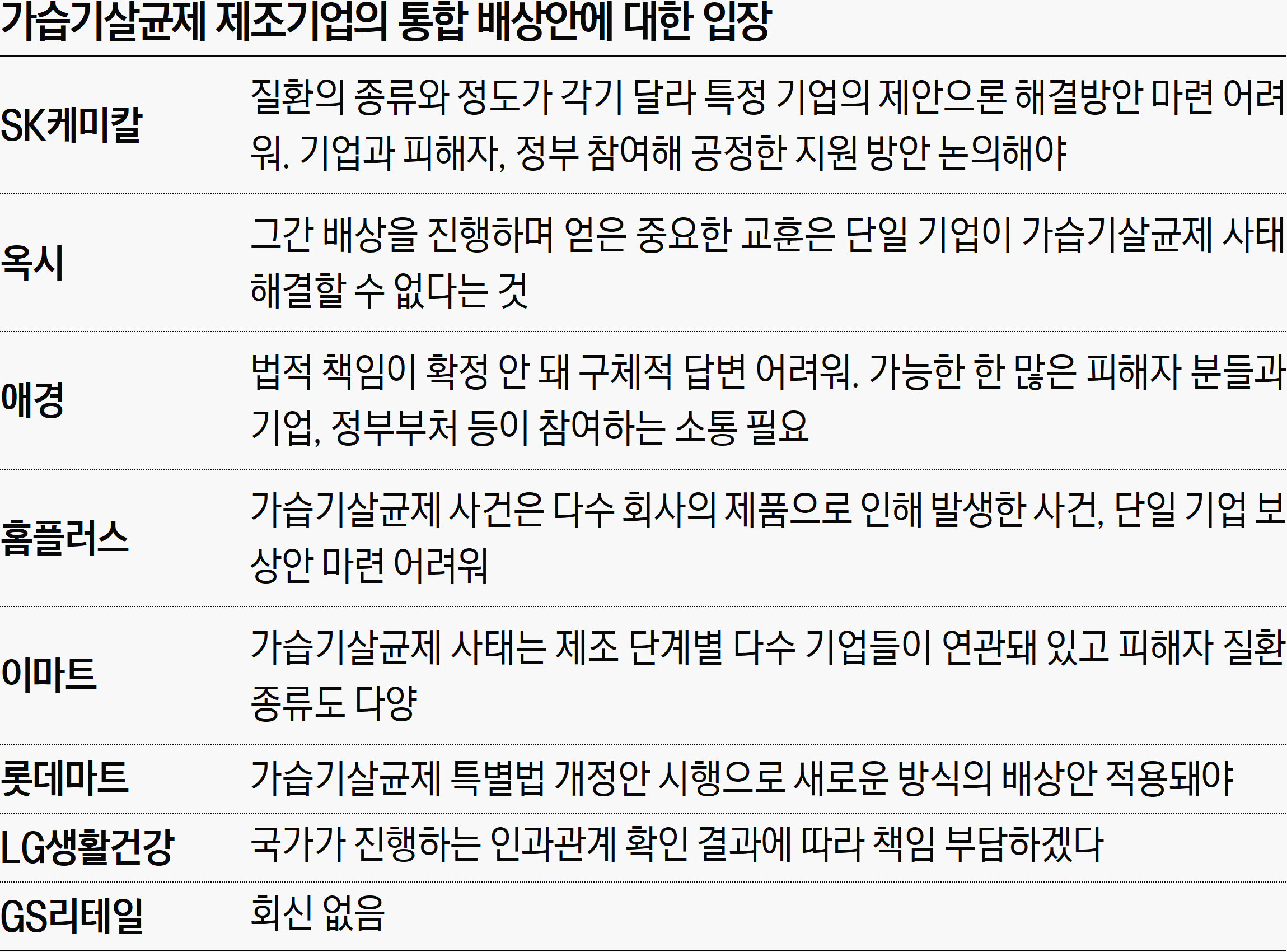 가습기살균제 제조기업의 통합 배상안에 대한 입장