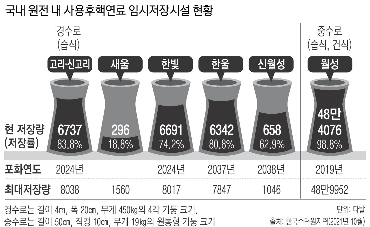 [핵 폐기물 처리, 더 이상 미룰 수 없다] (상) 갈 곳 없는 '고준위 방폐물' - ‘사용후 핵연료’ 임시저장시설 포화 임박…35년째 해법 못 찾아