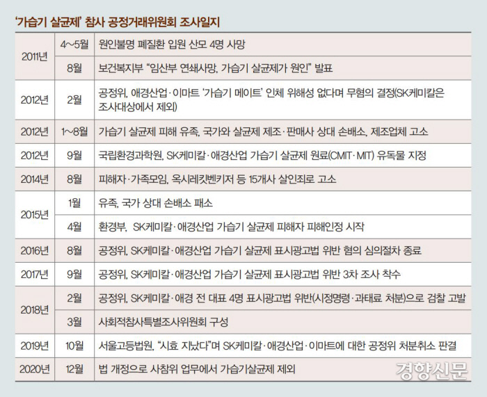 가습기 살균제 참사 공정거래위원회 조사 일지