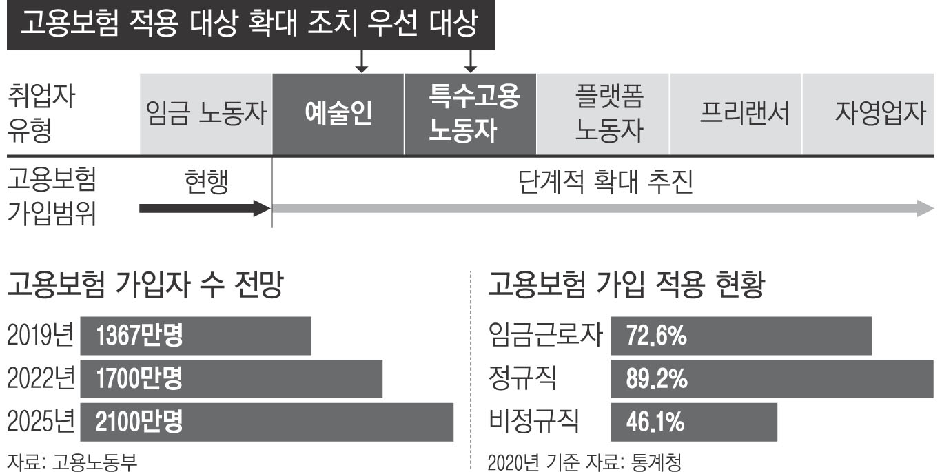정부의 ‘2025년 전 국민 고용보험 가입’ 로드맵에 따라 오는 7월부터 기존에 고용보험 미적용 대상이었던 보험설계사, 학습지노동자, 방문판매원 등 일부 특수고용노동자(특고)는 고용보험에 가입할 수 있게 된다.