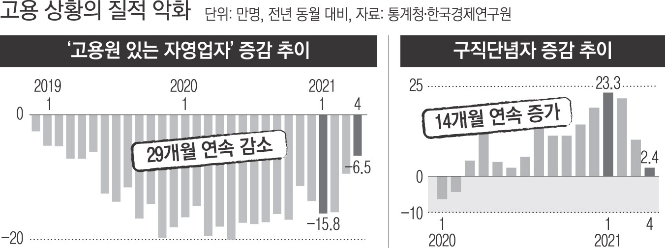 직원을 두지 않는 ‘나홀로 사장’이 지속적으로 늘어나고, 구직을 아예 포기하는 사람들도 증가 추세인 것으로 나타났다.