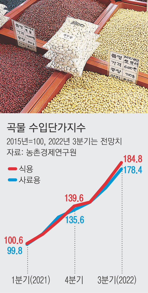 곡물 가격은 사료가격을 통해 축산물 가격에도 영향을 미쳐 ‘밥상물가’ 상승 압력이 더 세질 것으로 예상된다.