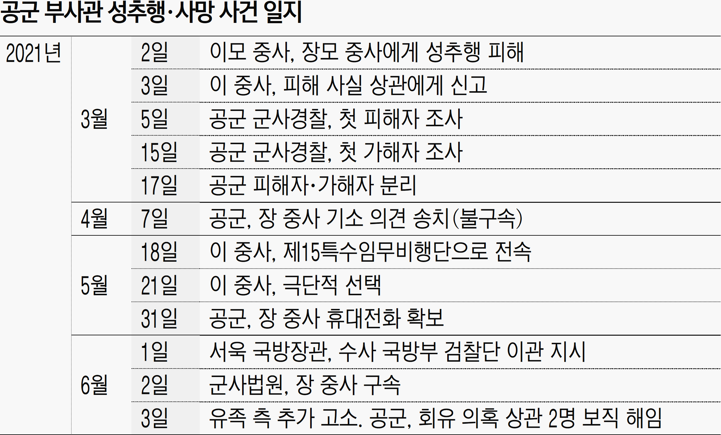 공군 성추행·사망 일지