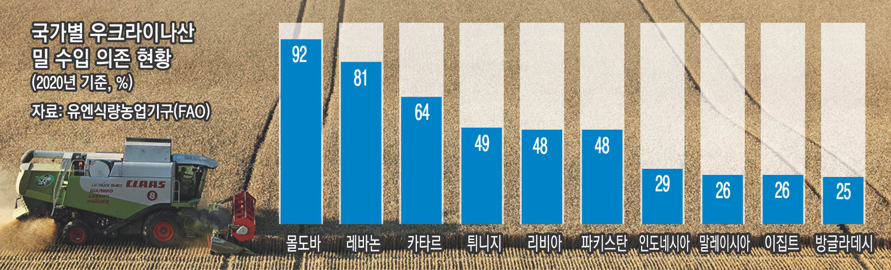 우크라이나에서 전 세계 빈곤국 1년치 소비량과 맞먹는 양의 곡물이 수확을 앞두고 있지만 러시아군에 의해 흑해로 통하는 항구들이 봉쇄되면서 수출길을 찾지 못하고 있다.