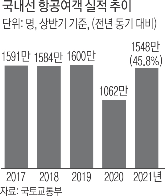 코로나19 확산 속에서도 항공기 국내선 이용객 수가 코로나19 이전 수준으로 회복됐다.