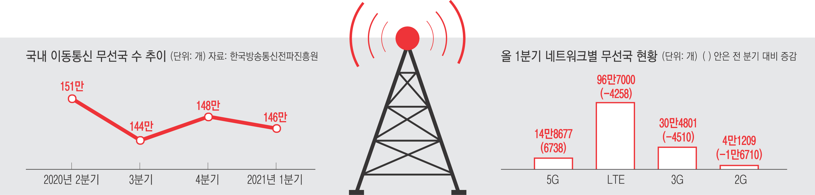 국내 휴대용 이동전화 서비스 개시 이후 성장세를 이어온 이동통신 기지국 수가 최근 감소했다.