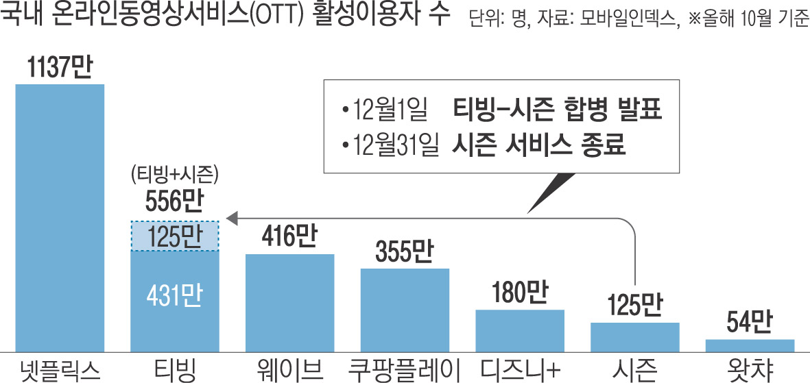 몸집 키운 토종 OTT ‘티빙’, 넷플릭스 넘사벽에 도전장 '티빙+시즌' 합병 완료