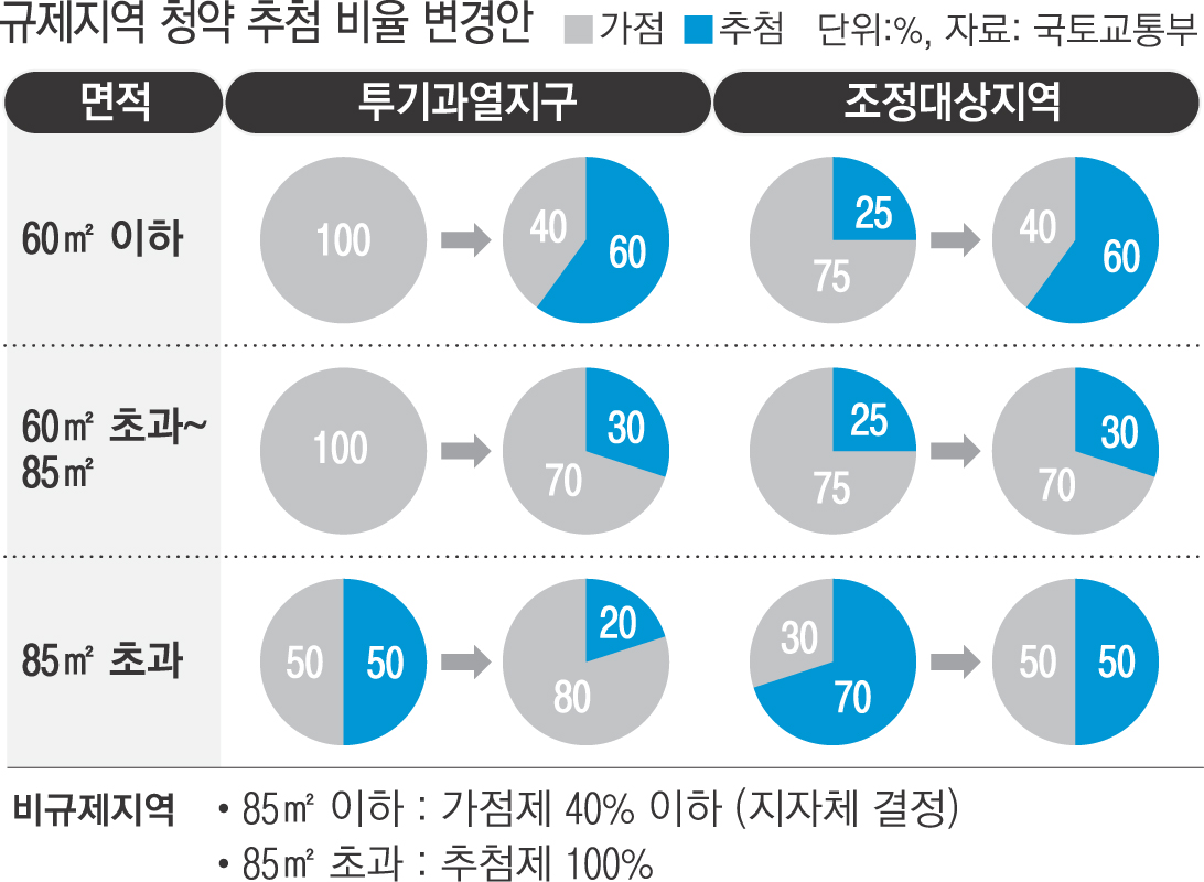 우선 청년 가구에 불리한 가점제도를 일부 변경해 투기과열지구와 조정대상지역 내 가점·추첨 비율을 조정한다.