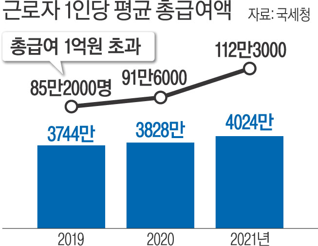 ‘억대 연봉자’ 수도 집계 이후 처음 100만명을 넘겼다.