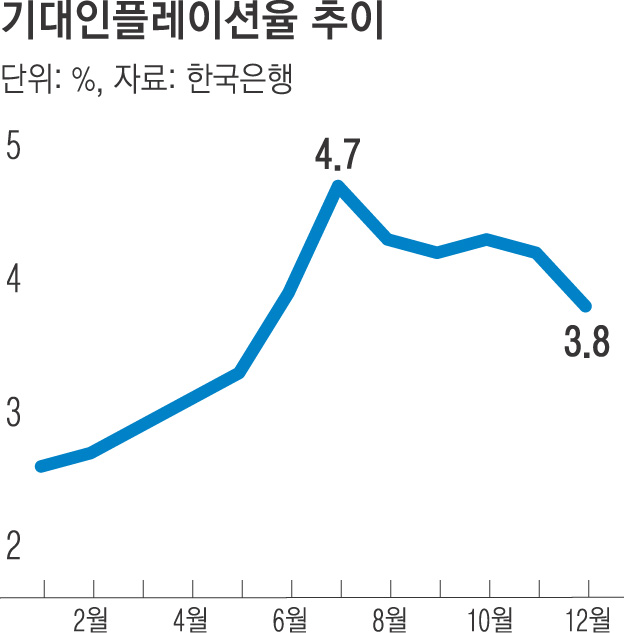 한국은행이 27일 발표한 ‘12월 소비자동향조사’ 결과를 보면 기대인플레이션율은