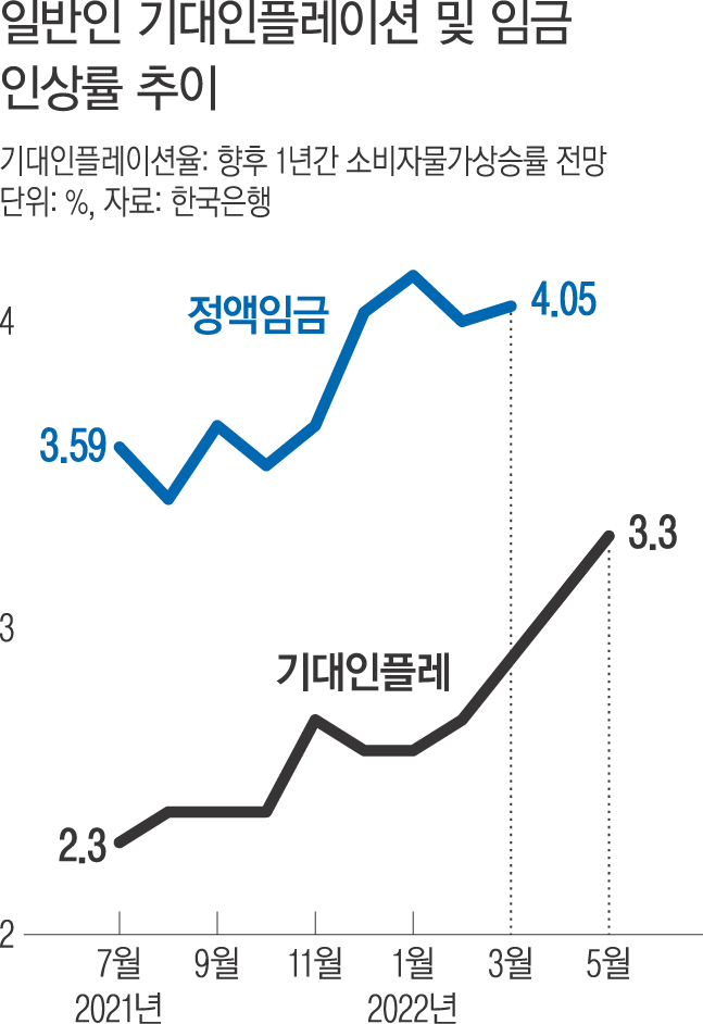 실질소득이 줄어들게 된 근로자들이 임금 인상을 요구하고, 기업들도 제품가격에 반영하기 시작해 물가를 또다시 끌어올리는 순환 고리가 만들어지고 있는 것이다.