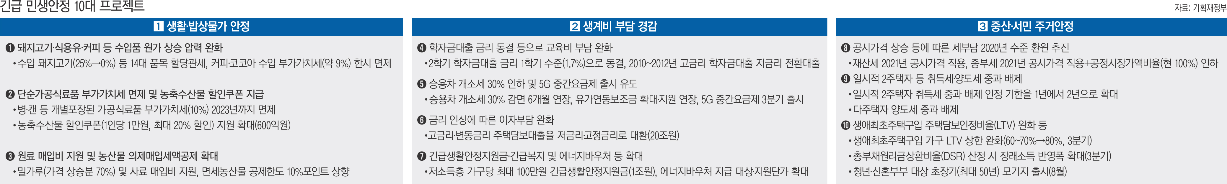 정부가 30일 발표한 긴급 민생안정 대책에는 부동산 보유세 인하, 생필품 가격 인하, 대출규제 완화 등의 내용이 담겼다.