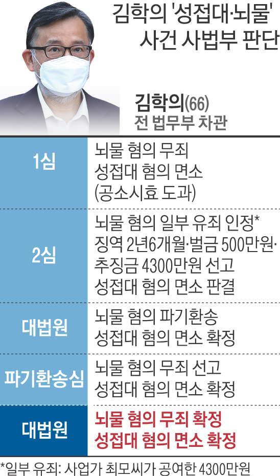 김학의 전 법무부 차관이 11일 뇌물수수 혐의에 대해서도 무죄를 확정받았다.