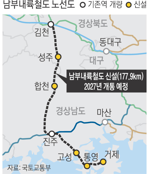 철도 건설이 완료되면 수도권에서 출발한 KTX와 SRT(수서고속철)가 경부고속철도를 거쳐 김천역에서 거제시까지 운행하는 노선과, 진주역에서 경전선을 활용해 마산역까지 운행하는 2개의 노선이 마련된다.