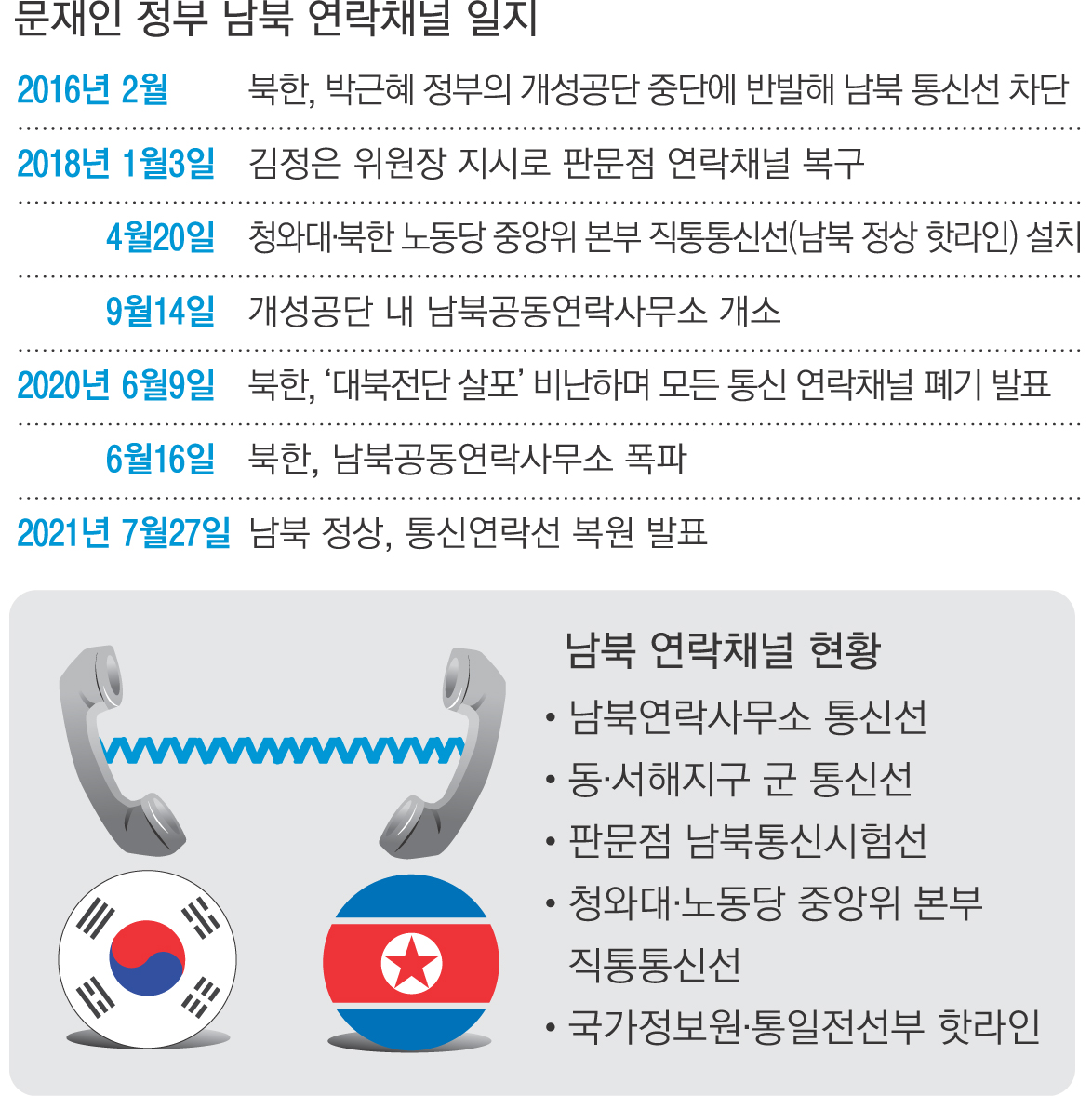 남북이 27일 통신선을 13개월여 만에 전격 복원함으로써 2019년 2월 하노이 북·미 정상회담 이후 사실상 단절 상태에 빠졌던 남북관계에 희소식을 가져왔다. 북·미 대화 추진에도 속도가 붙을 가능성이 생겼다.