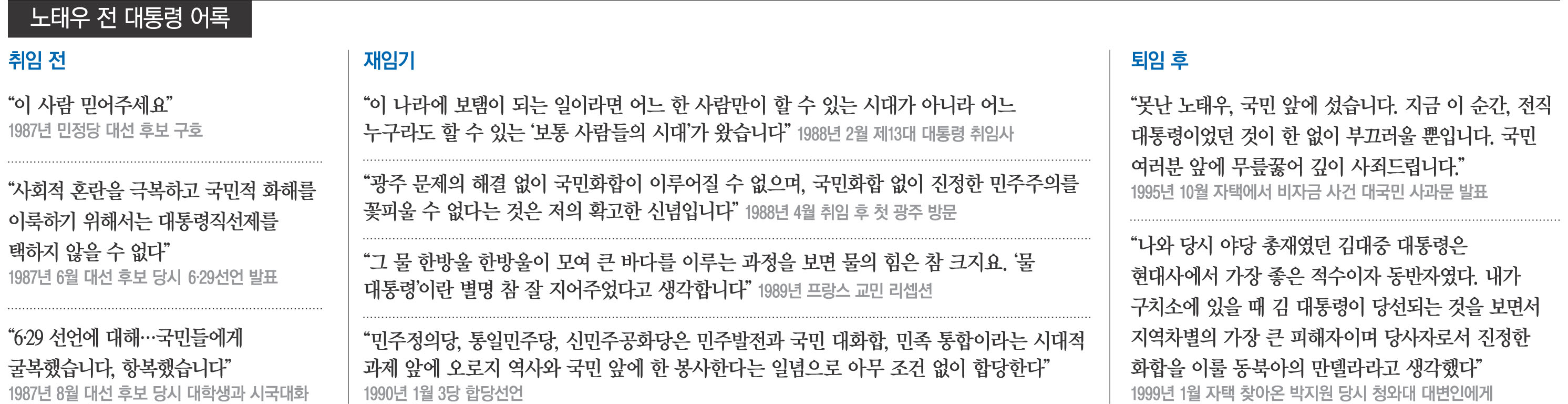 노태우 전 대통령 어록