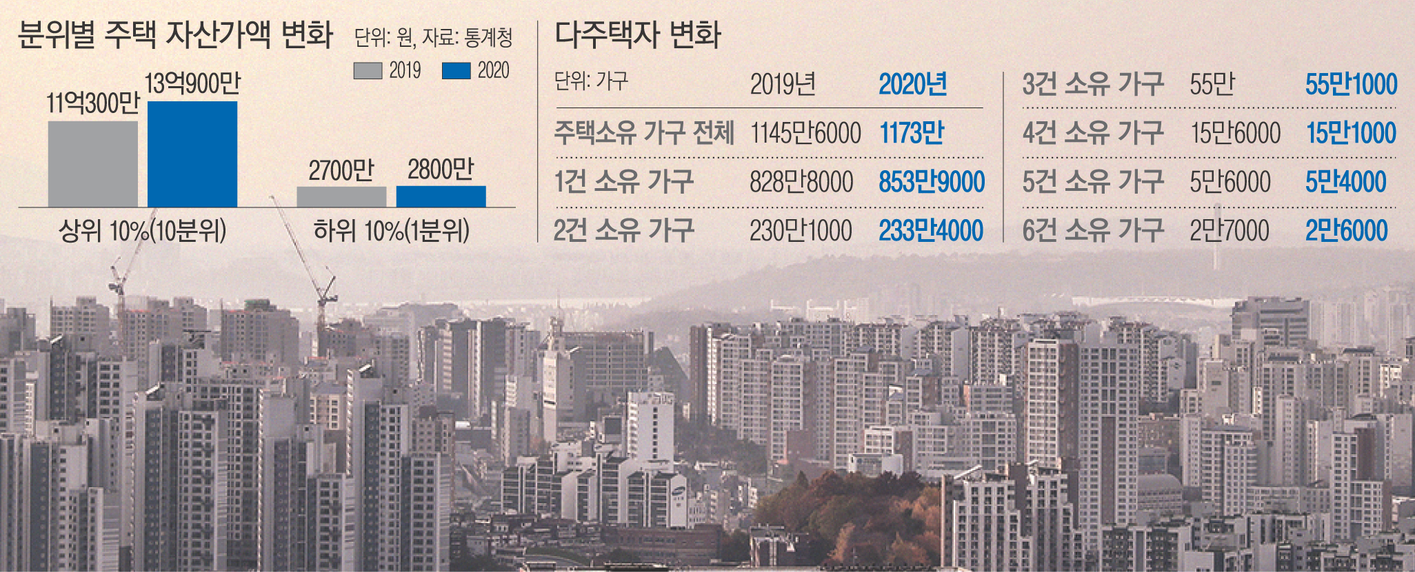다주택자 수는 전년 228만4000명에서 3만6000명 늘었지만 2018년(7만3000명)과 2019년(9만2000명)에 비하면 증가세는 확연하게 꺾였다.