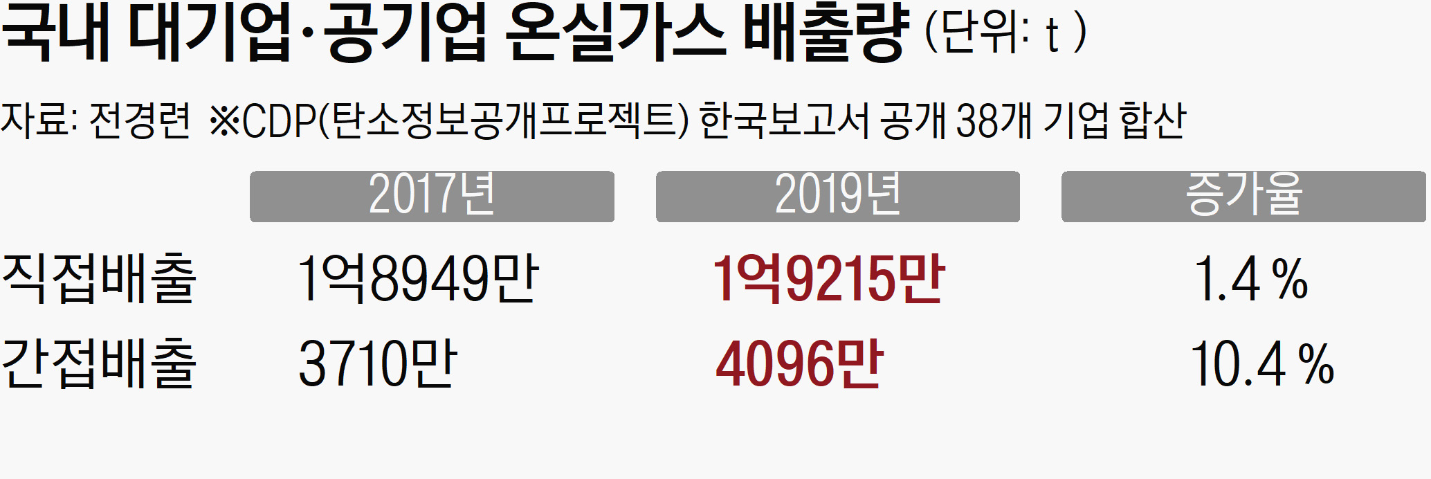 주요국들이 온실가스 배출 감축에 힘을 쏟고 있는 가운데 국내 기업들의 탄소 배출량은 지난 3년 동안 되레 늘어난 것으로 나타났다.