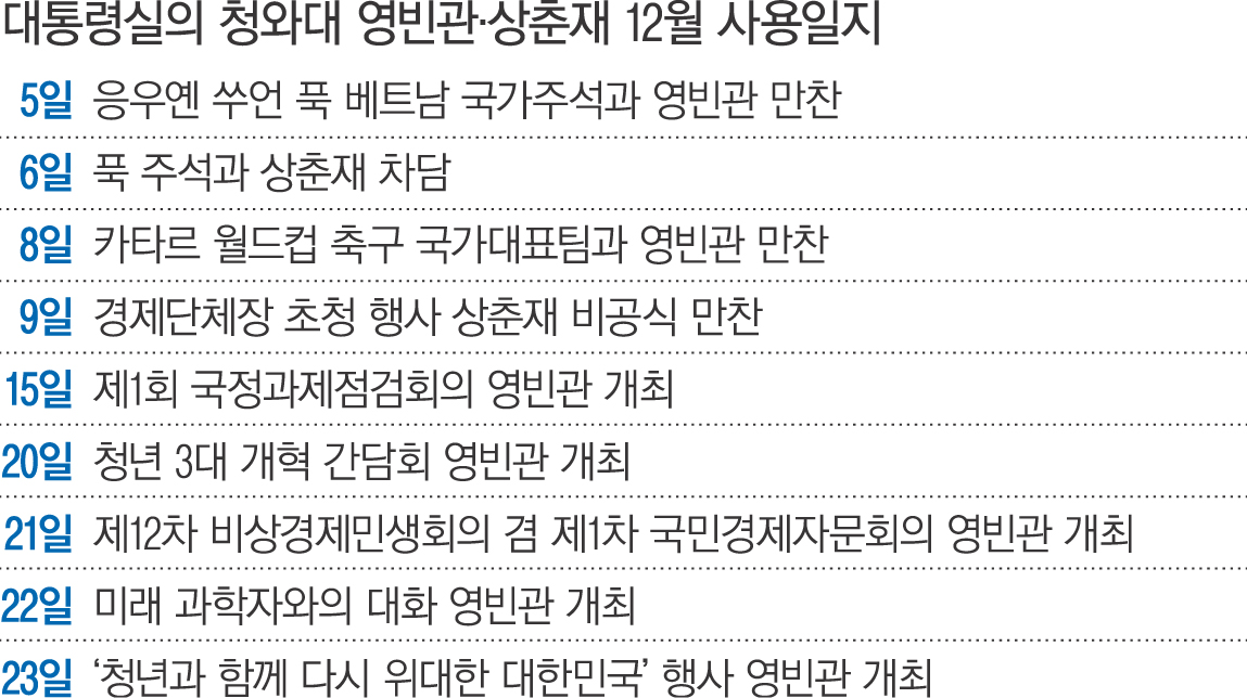 대통령실의 청와대 영빈관, 상춘재 사용일지