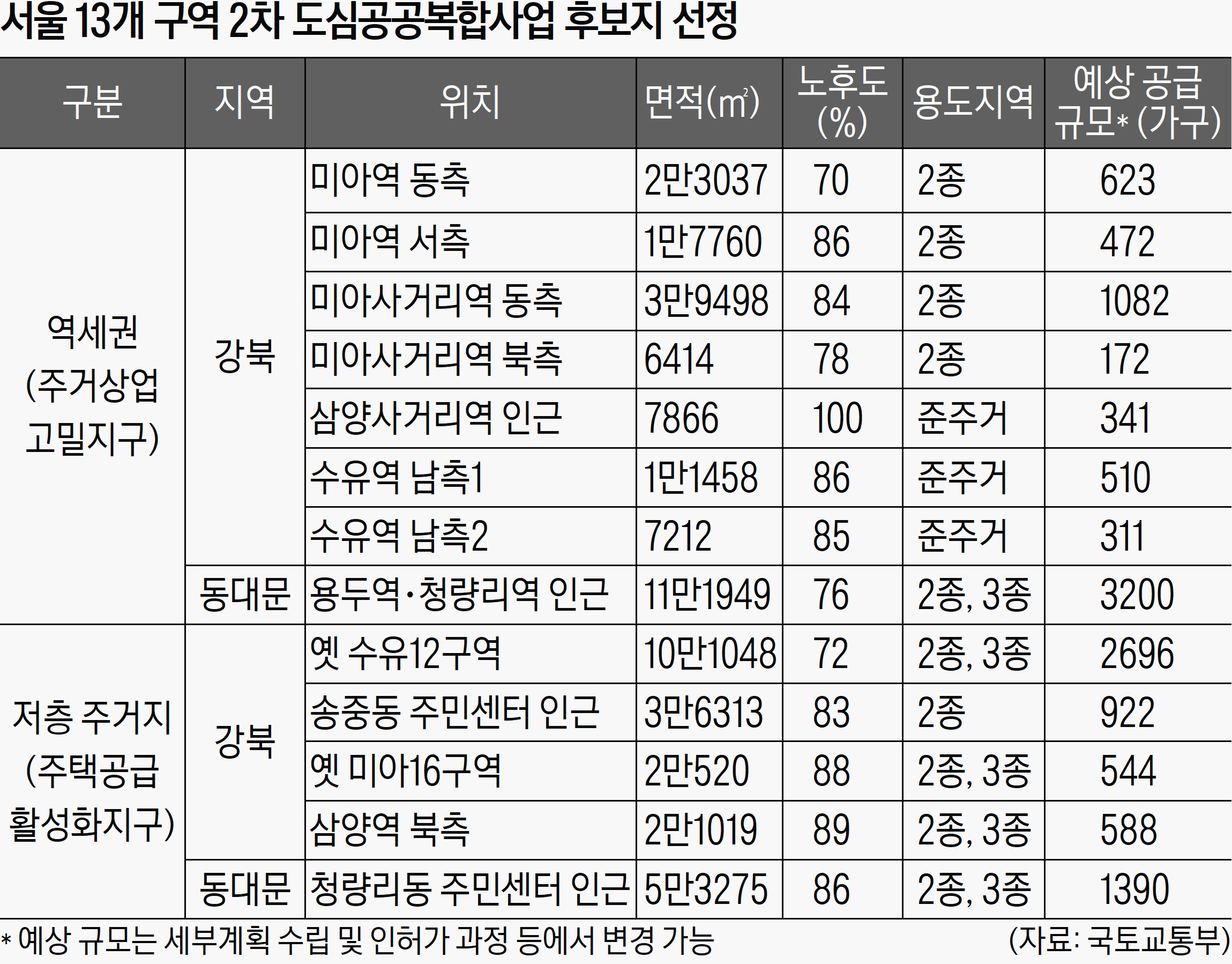‘도심공공복합사업’ 2차 후보지, 서울 미아역 주변 등 13곳 선정