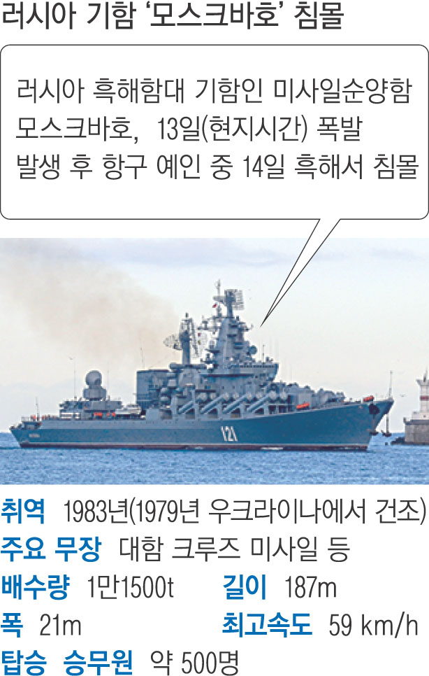 흑해 함대 상징 ‘모스크바호’ 침몰…러시아군의 진로 ‘중대변수’ 되나