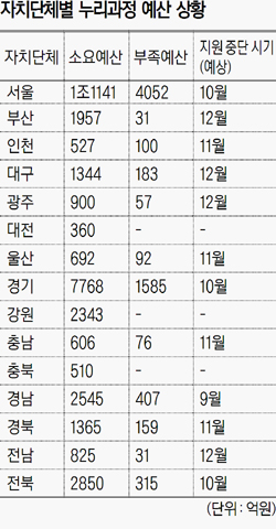 자치단체별 누리과정 예산 상황