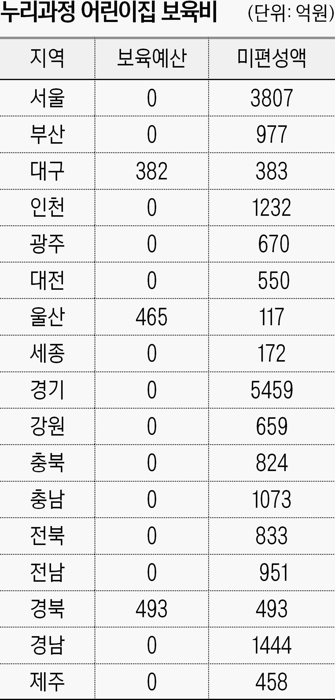 시·도별 올해 어린이집 누리과정 예산 확보 현황
