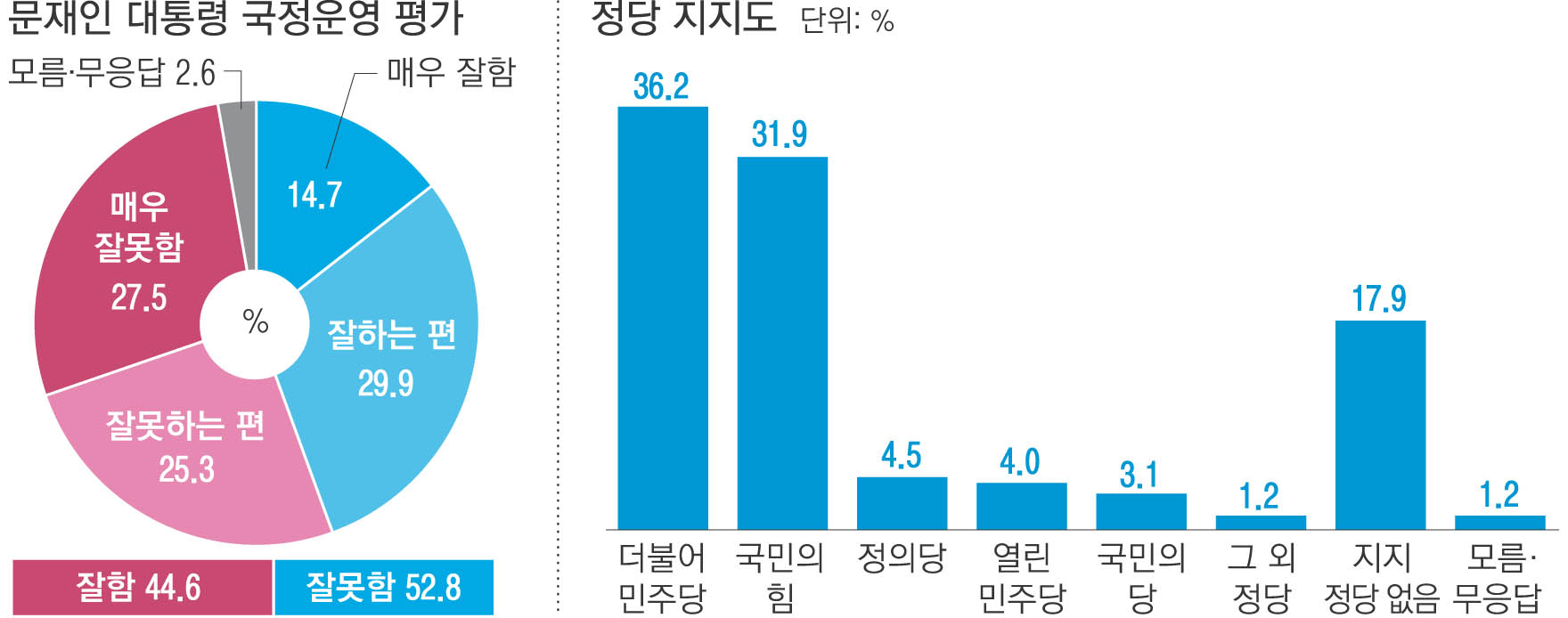 [창간 기획 - 대선 여론조사]문 대통령 국정 지지도 44%…민주당·국민의힘 4.3%P차