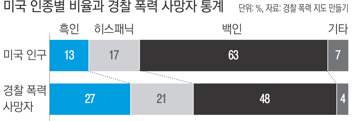 특히 흑인 등 유색인종 사망자 비율은 인구 비율에 비해 상대적으로 높은 것으로 확인된다.