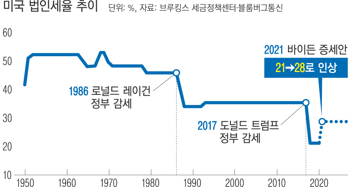 조 바이든 미국 정부가 증세 드라이브를 본격화하기 시작했다. 2조달러 규모의 인프라 투자 예산을 확보하기 위한 법인세와 소득세 인상에 나선 것이다.