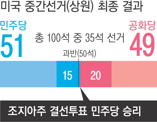 상원에서 민주당은 ‘51 대 49’로 확실한 과반을 굳히게 됐다.
