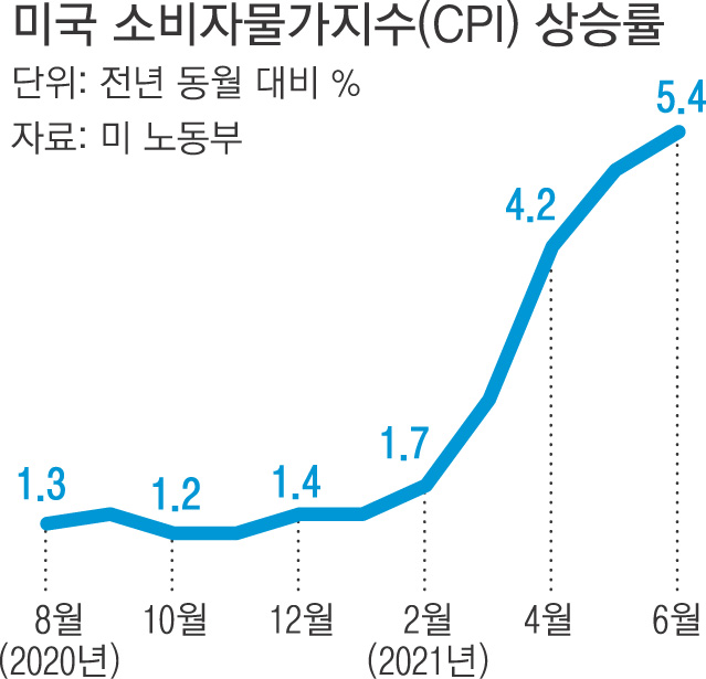 미국 정부와 연방준비제도(Fed·연준)는 공급 부족에 따른 일시적 인플레이션이라는 입장이나 연준의 조기 긴축 가능성에 대한 우려가 이어지고 있다.