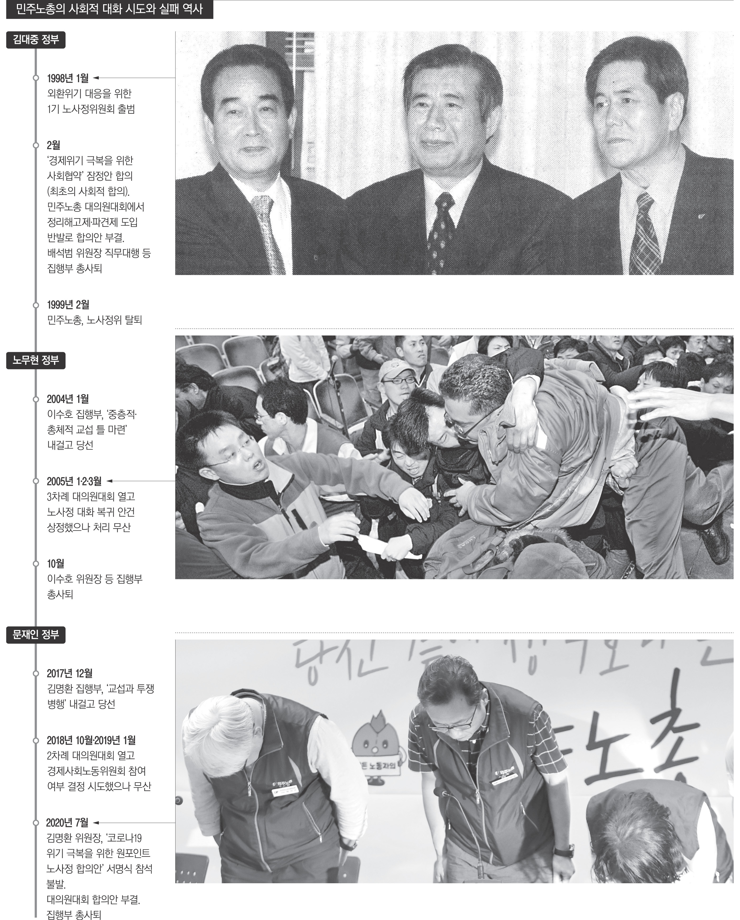 노동계, 특히 민주노총은 노사정 대화를 노조에 양보를 강요하고
