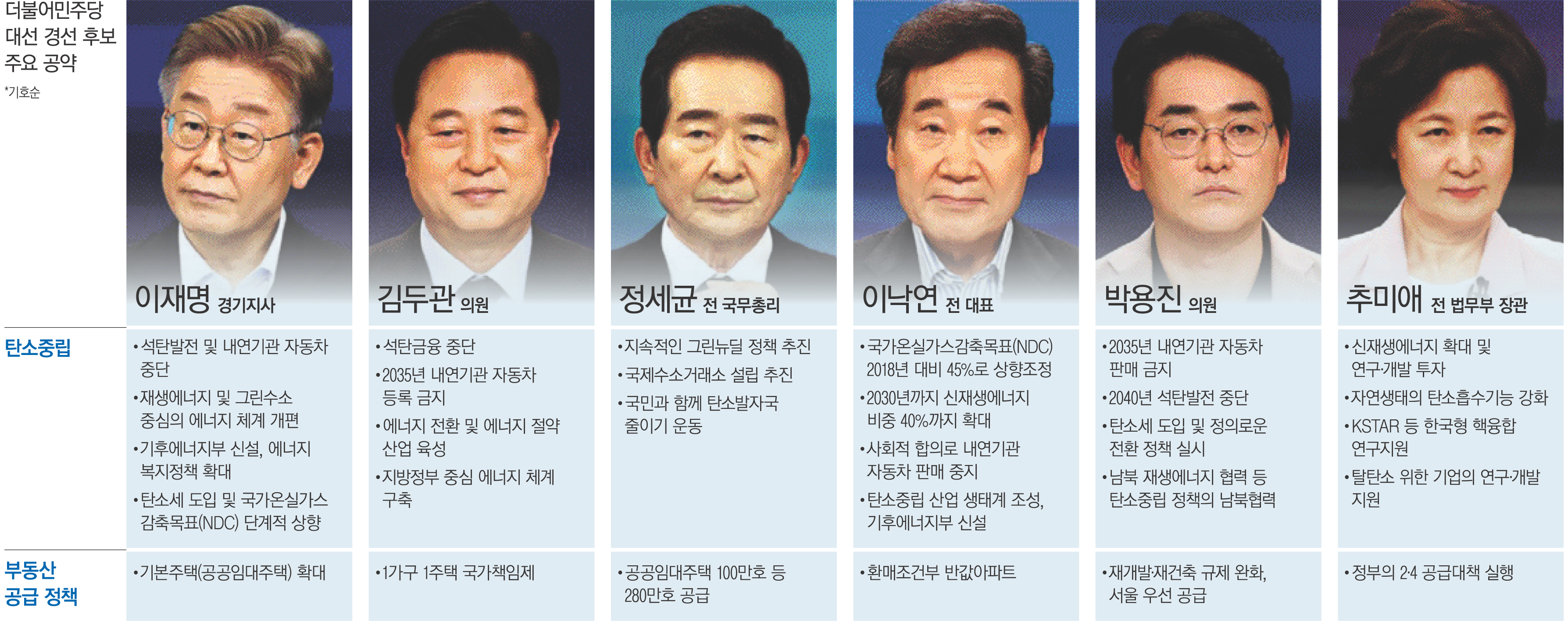 더불어민주당 대선 경선 후보들이 27일 탄소중립 정책공약을 발표했다.