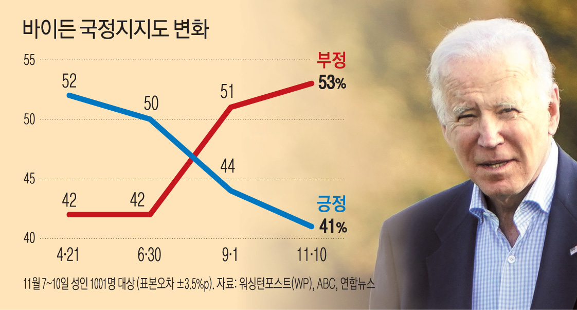 지난 8월 아프가니스탄 철군 혼란 사태가 지지율 하락을 촉발했다면 지지부진한 코로나19 방역, 급속한 물가 상승 등 경제정책에 대한 실망감은 이를 부채질하고 있다.
