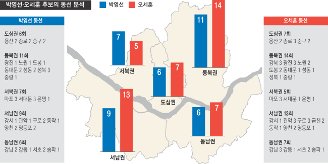 공식 선거 운동 시작일인 지난달 25일부터 선거일을 사흘 남긴 4일 현재까지 두 후보는 서울 전역을 훑으며 강행군 중이다.