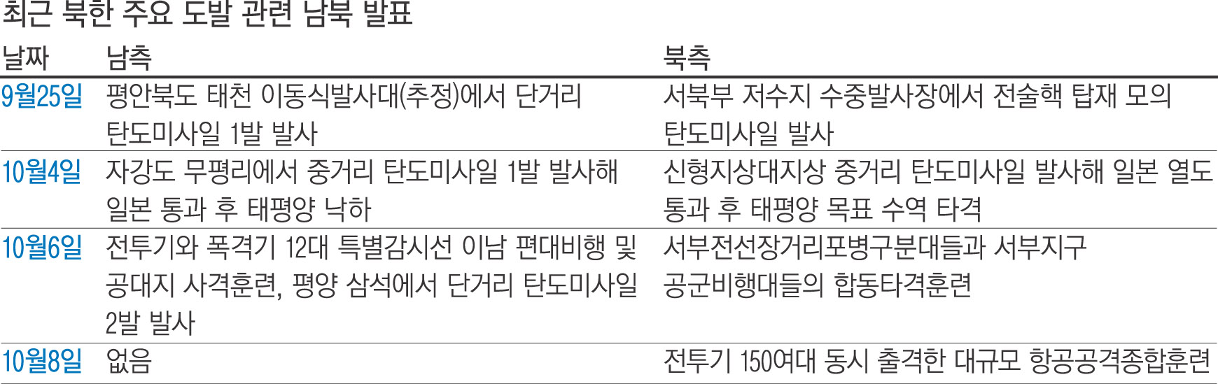 북한 도발 관련 남북 발표
