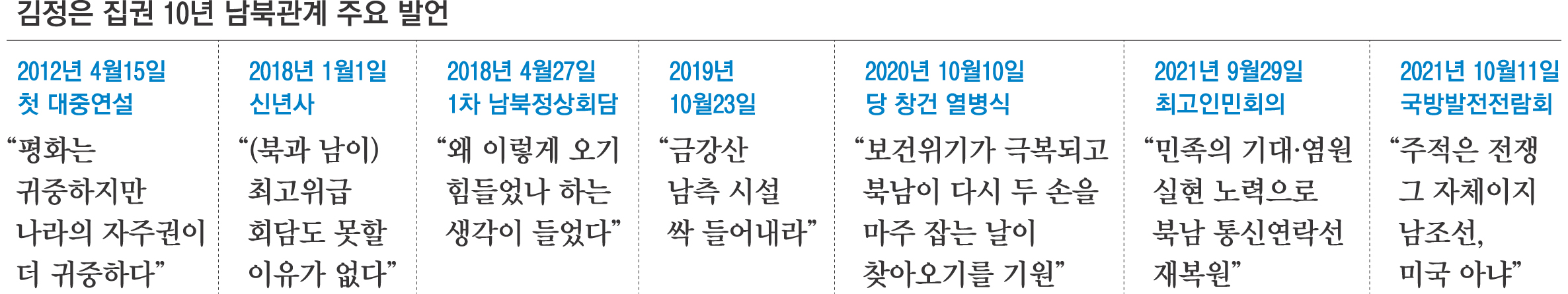 북한 김정은 집권 10년 남북관계 주요 발언