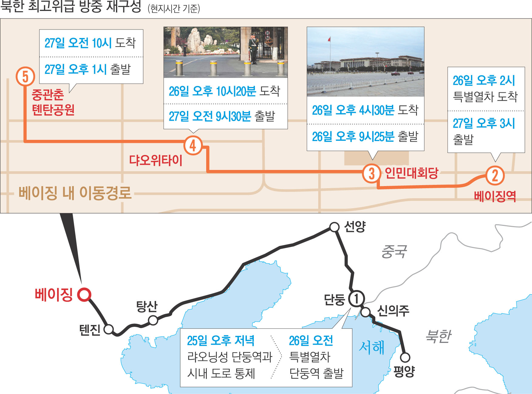 북한 최고위급 방중 재구성