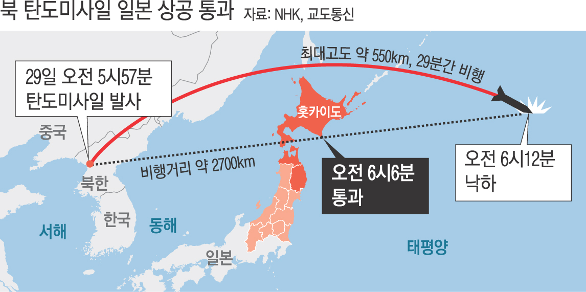 북 탄도미사일 일본 상공 통과