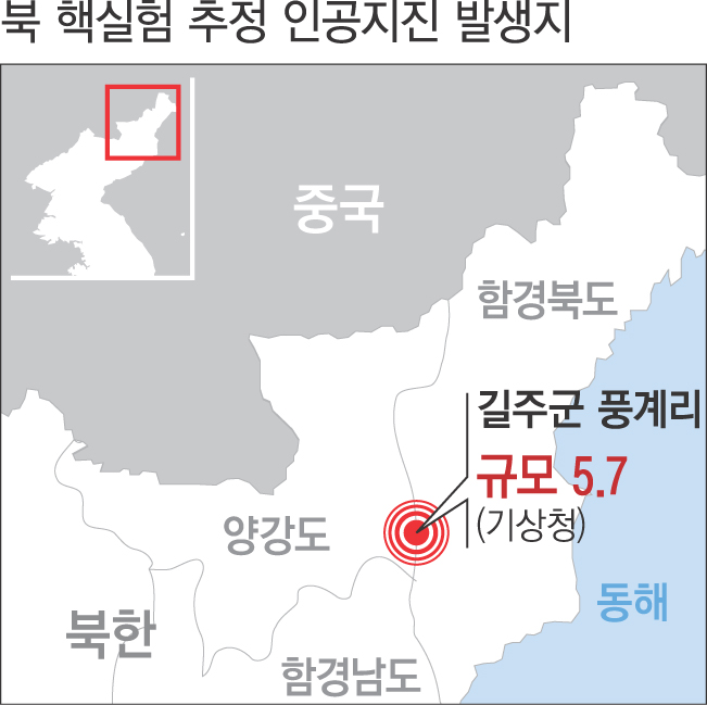 북 핵실험 추정 인공지진 발생지