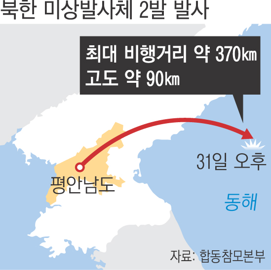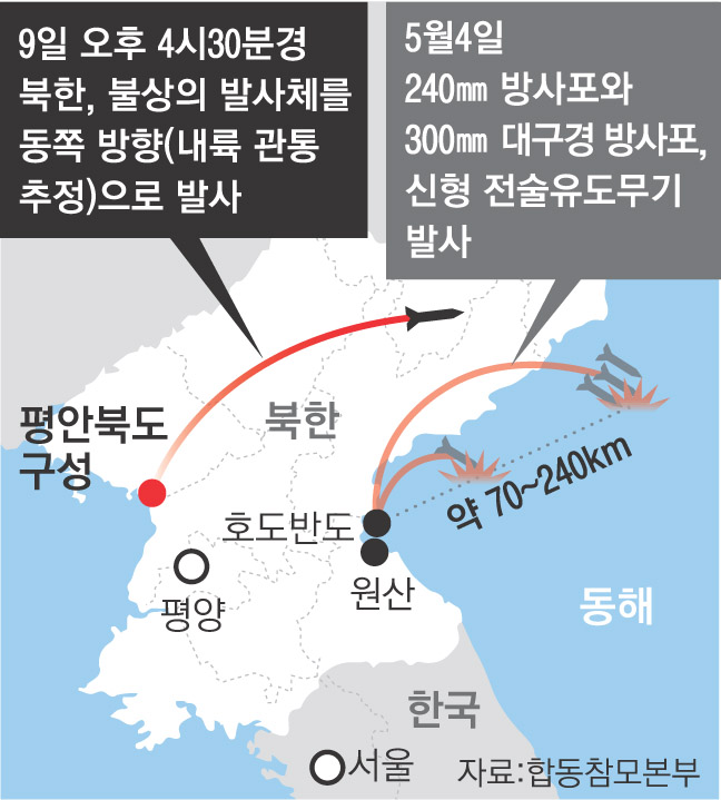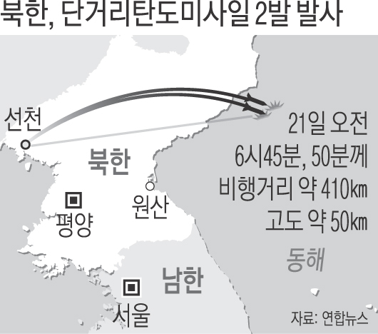 [북한 또 발사체 발사]북, 닷새 만에 또…‘단거리 미사일’ 2발 발사