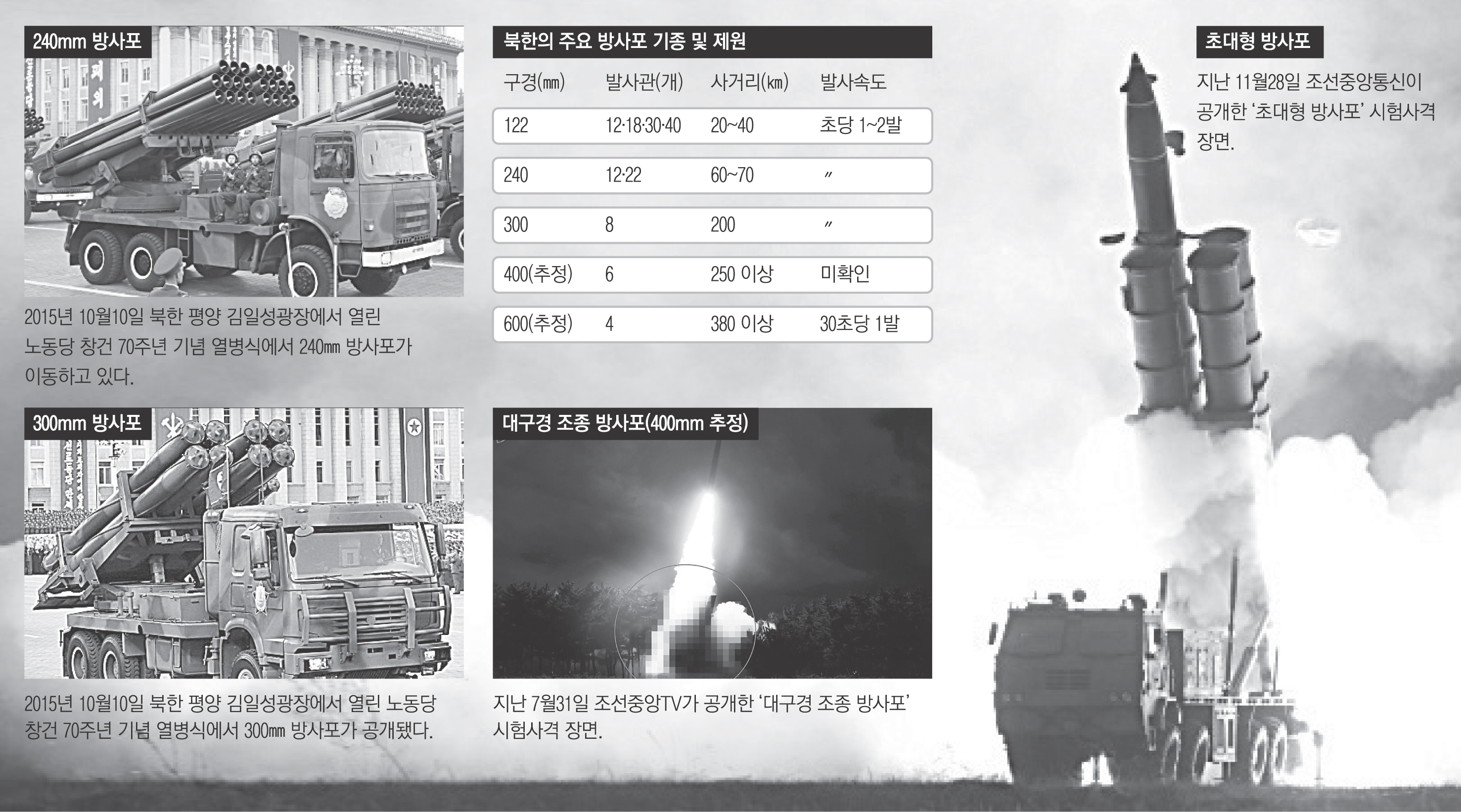 북한의 주요 방사포 기종 및 제원