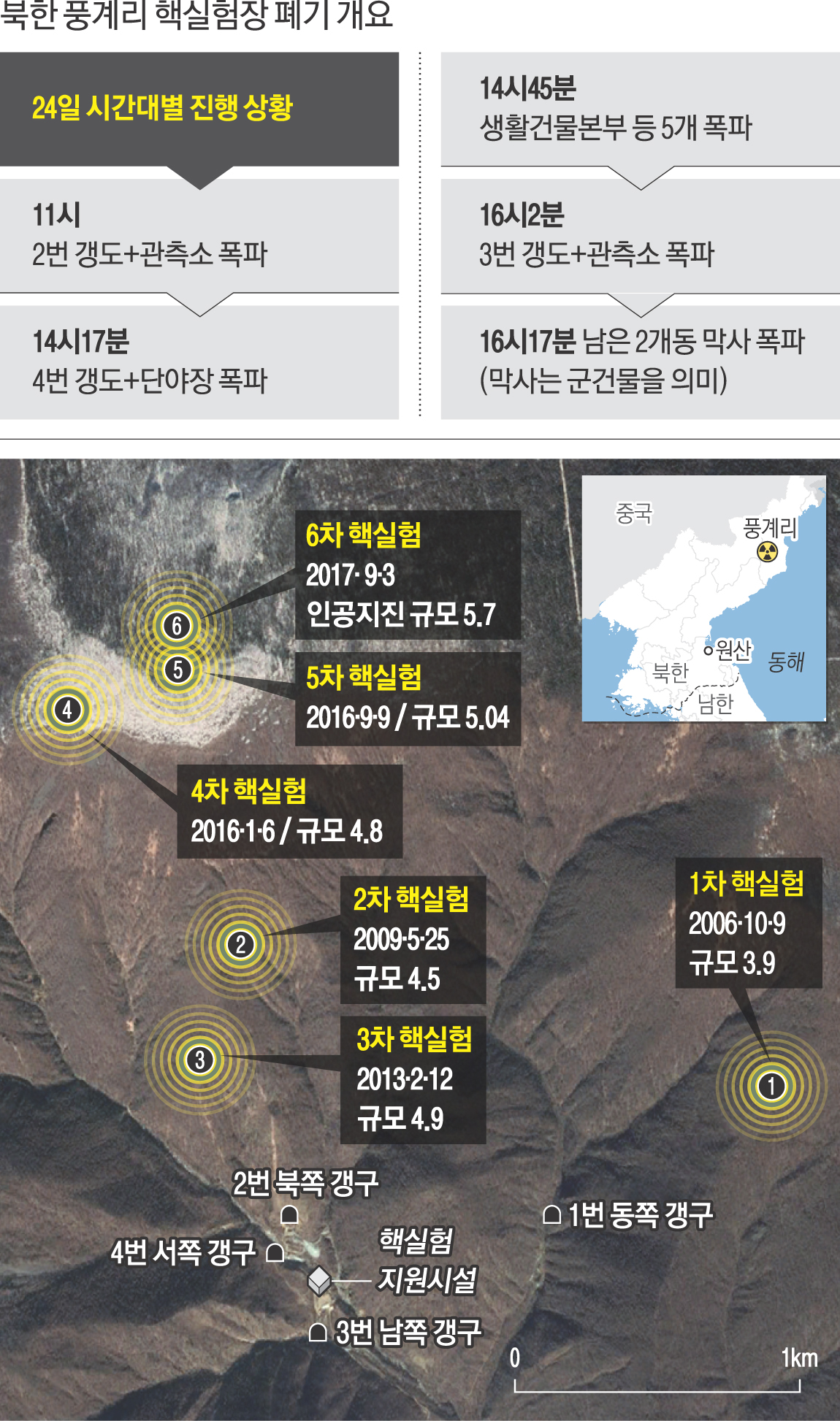 [풍계리 핵실험장 폐기]“셋·둘·하나…큰 폭발과 함께 갱도 입구로 바위 쏟아져”