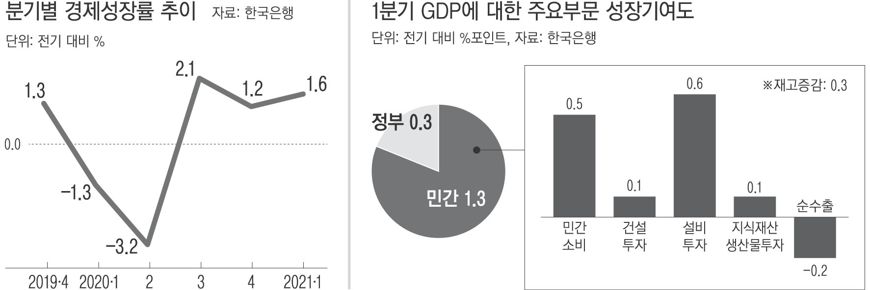 한국 경제가 ‘1.6%’ 성장이라는 우수한 1분기 성적표를 받아들었다.