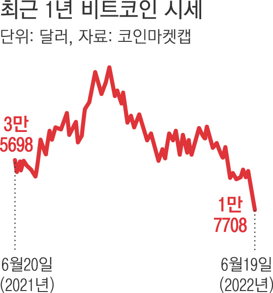 대장주 격인 비트코인은 1년7개월여 만에 처음으로 1만8000달러 밑으로 떨어졌고, 가상통화 전체 시가총액 규모도 7개월 사이에 70% 이상 감소했다.