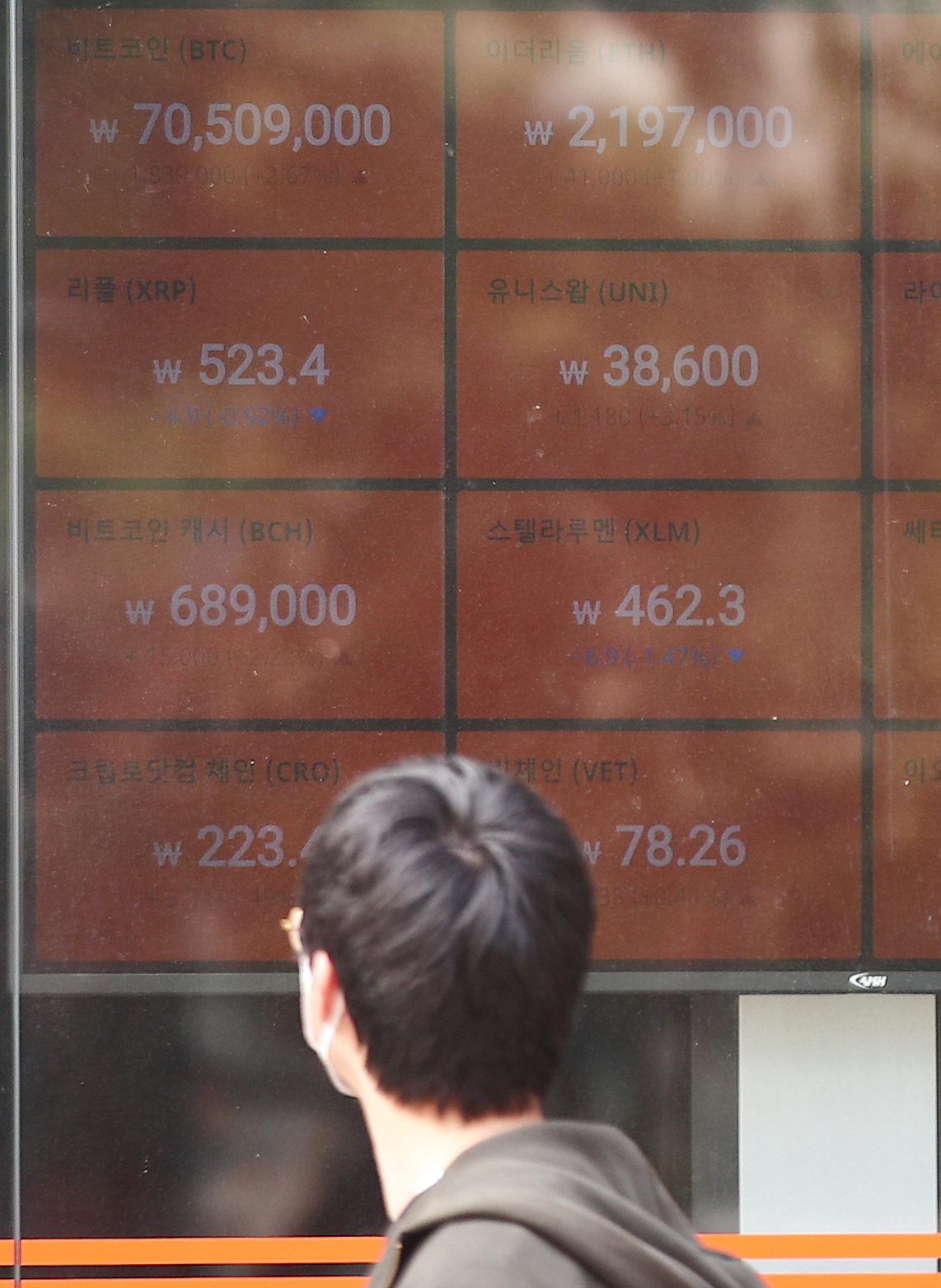 가상통화의 대표 격인 비트코인의 개당 가격이 국내 거래소에서 사상 처음으로 7000만원을 넘어섰다. 미국에서 1조9000억달러(약 2145조원) 규모의 부양책이 통과되면서 물가 상승 우려가 높아지고, 테슬라와 트위터 같은 기술 기업들이 결제수단으로서 비트코인을 지지하는 입장을 내놓으면서 수요가 늘고 있는 것으로 풀이된다.