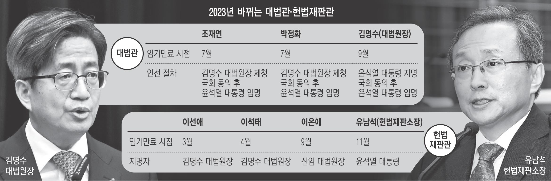 2023년 최고 사법기관인 대법원과 헌법재판소의 수장이 모두 바뀐다.