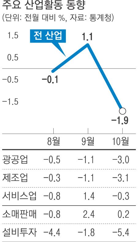 10월 생산, 18개월 만에 최대 감소…연말 국내 경기 불확실성 더 커졌다 <경향신문 2021년 12월 1일>